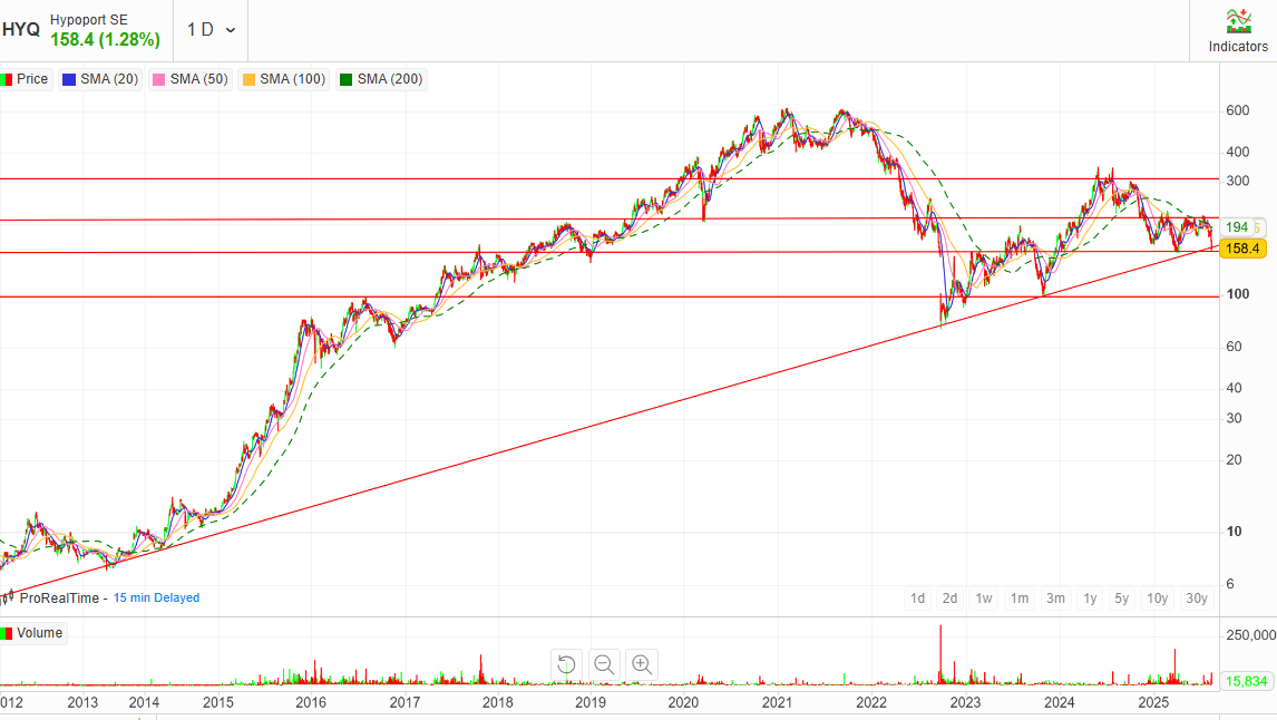 Der Kurs von Hypoport hat in den letzten Tagen - nach Veröffentlichung der Q2-Zahlen deutlich nachgegeben und liegt jetzt wieder bei ca. 160 Euro. Im langfristigen Kontext ist diese Kursbewegung nicht wirklich bemerkenswert - ein Rückgang von 50% seit Mitte 2024 tut allerdings im Kurzfristvergleich schon sehr weh.
